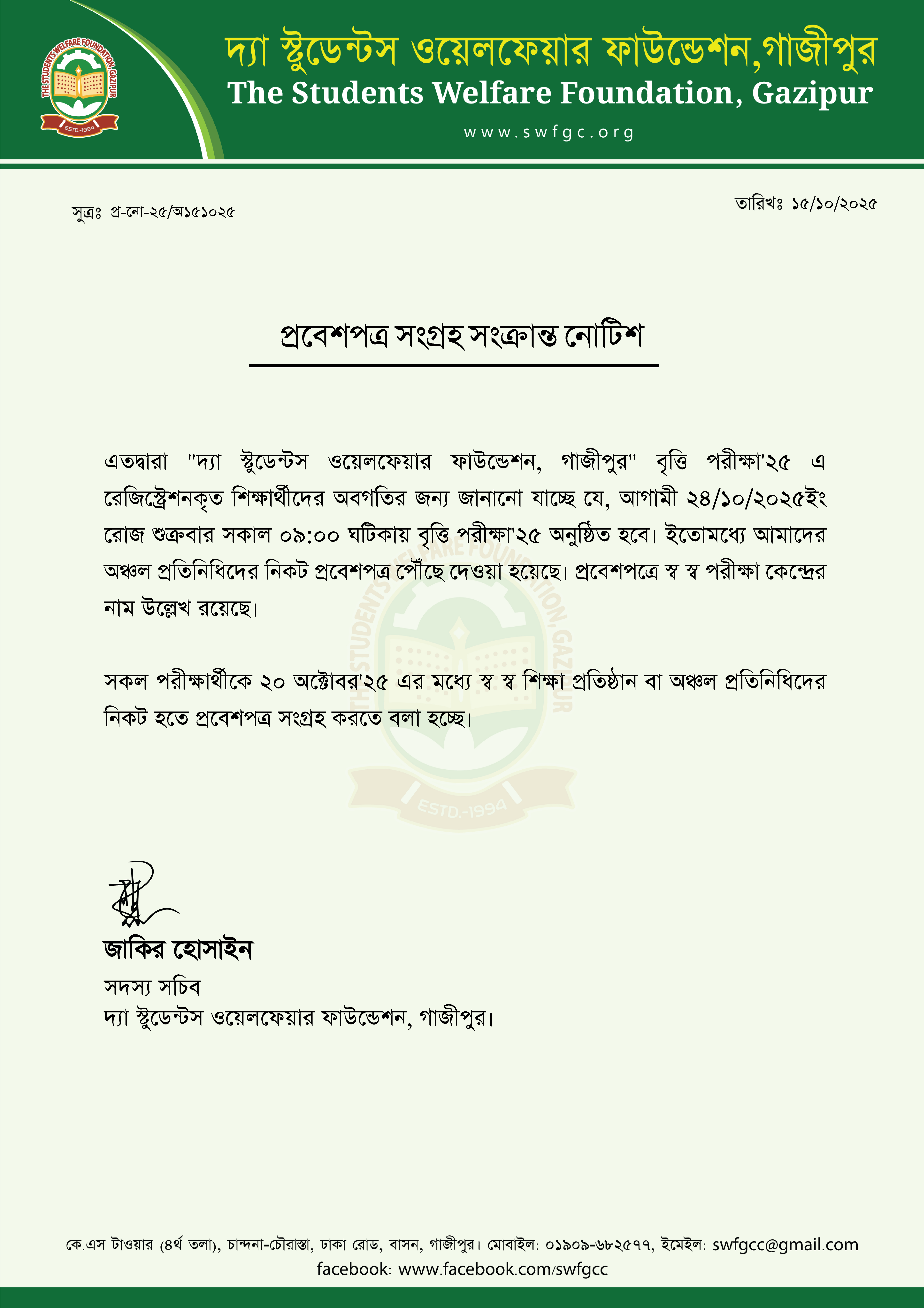 দ্যা স্টুডেন্টস ওয়েলফেয়ার ফাউন্ডেশন, গাজীপুর’এর বৃত্তি কার্যক্রম'২৫ এর শুভ উদ্বোধন , শিক্ষার বিকাশ ও মানবসম্পদ উন্নয়নে নিবেদিত ছাত্রকল্যাণ মূলক প্রতিষ্ঠান...